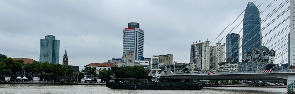 The Chinese name 寧波 means ‘tranquil waves.’ It was previously Anglicised as Ningpo but is now spelt Ningbo according to Hanyu Pinyin. It is a coastal city located in the east of Zhejiang Province (浙江省) in eastern China. The city was referred to by different names at different periods – 鄞 (Yín), 句章 (Gouzhang), 明州 (Mingzhou), and the current name 寧波 was adopted in the Ming dynasty. The city name is also abbreviated as Yong (甬), as in place names like 甬江 (Yong River) and 甬山 (Yong Hill) and the intangible cultural heritage 甬劇 (Yong opera). The city has a long history of trading connections with Japan and Korea dating back to the Tang and Song dynasties. It was also one of the locations where the Portuguese traded in the early 16th century. Ningbo was designated as one of the five treaty ports after the signing of the Treaty of Nanking in 1842. For over a thousand years, Ningbo has occupied a vital role in trade and commerce. Linguistically, the city was made known through the expression “go Ningpo more far” in Chinese Pidgin English.